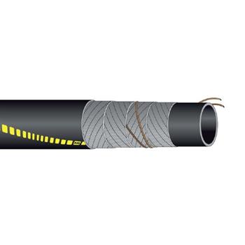 Olieslange opbygget i PVC/NBR gummi, med forstærkning af syntetisk væv og antistatisk kobbertråd.
